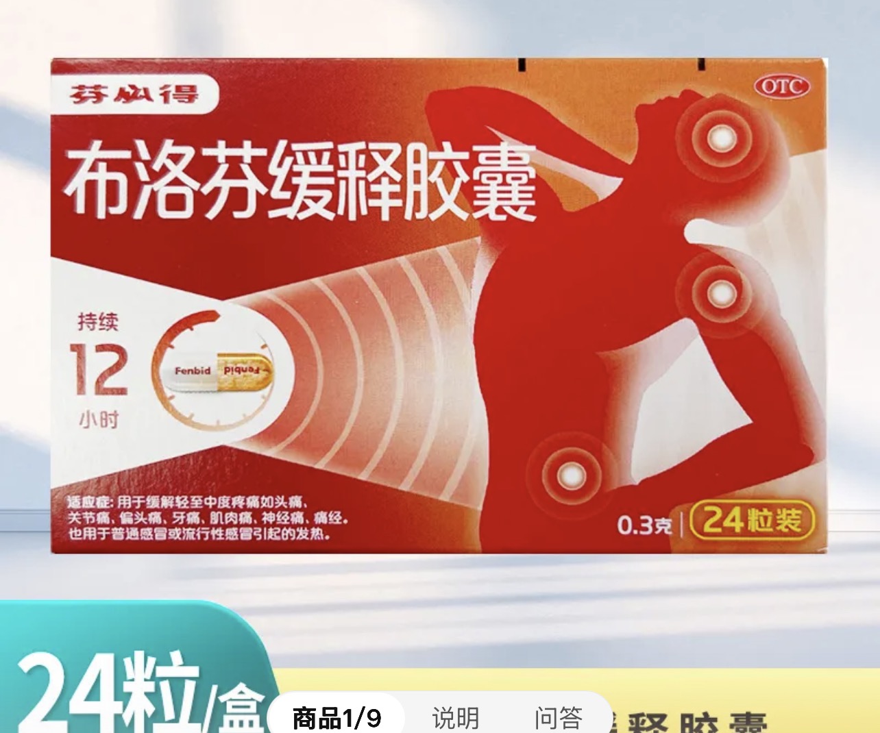 (芬必得)布洛芬缓释胶囊0.3g*12粒*2版/盒