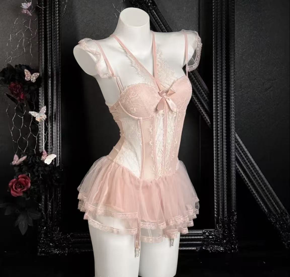 纯欲蕾丝网纱睡裙(衣裙连体)